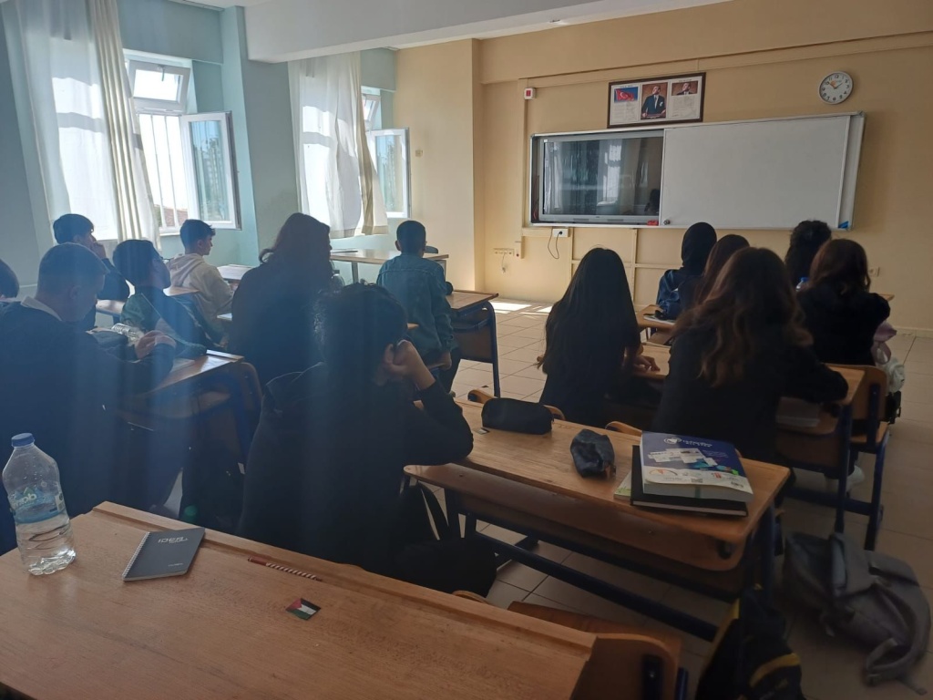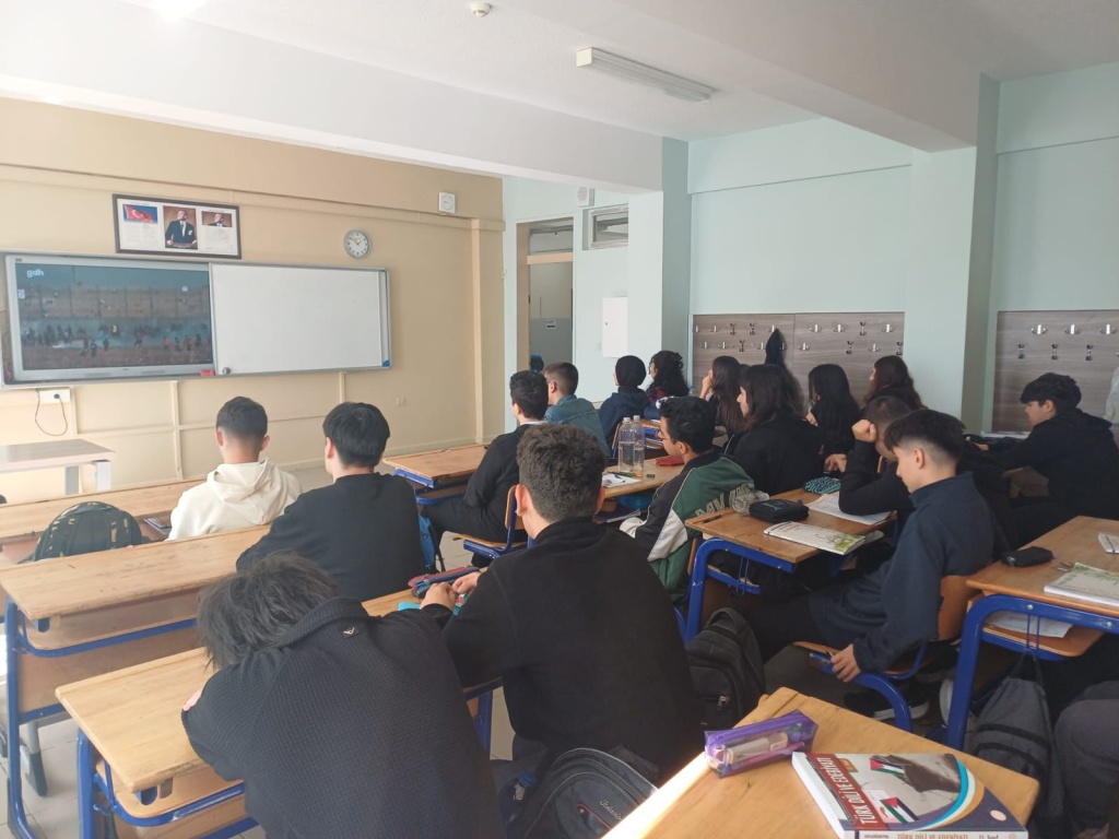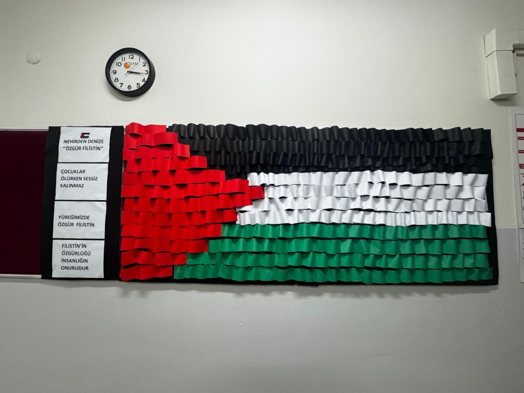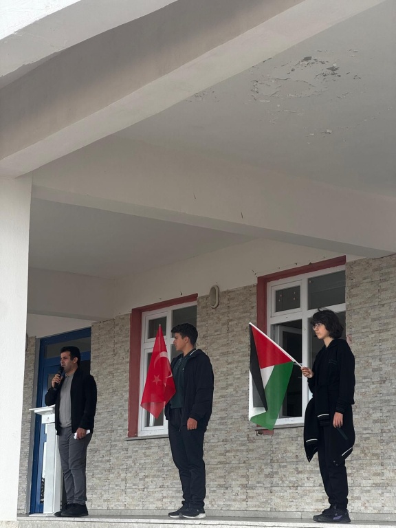 Millî Eğitim Bakanlığının çağrısıyla, Filistin’de yaşanan insanlık dramına dikkat çekmek ve toplumsal farkındalık oluşturmak amacıyla okulumuzda çeşitli etkinlikler düzenlendi. Etkinlikler kapsamında öğrencilerimiz ve öğretmenlerimiz tarafından Filistin bayrağı ve özgürlük temalı bir pano hazırlandı. Ayrıca okul genelinde temaya uygun bir farkındalık videosu öğrencilerimize izletildi. Günün sonunda ise öğretmen ve öğrencilerimiz tarafından hazırlanan anlamlı bir program gerçekleştirildi. Etkinliklerle birlikte öğrencilerimizin hem insani değerlere duyarlılığı arttı hem de mazlum coğrafyalara karşı bilinç kazanmaları sağlandı. Bu anlamlı etkinlikler için okulumuz öğretmen ve öğrencilerine teşekkür ederiz.